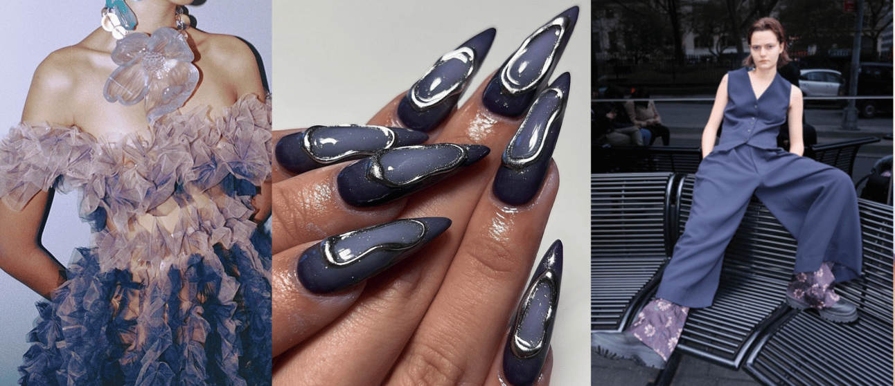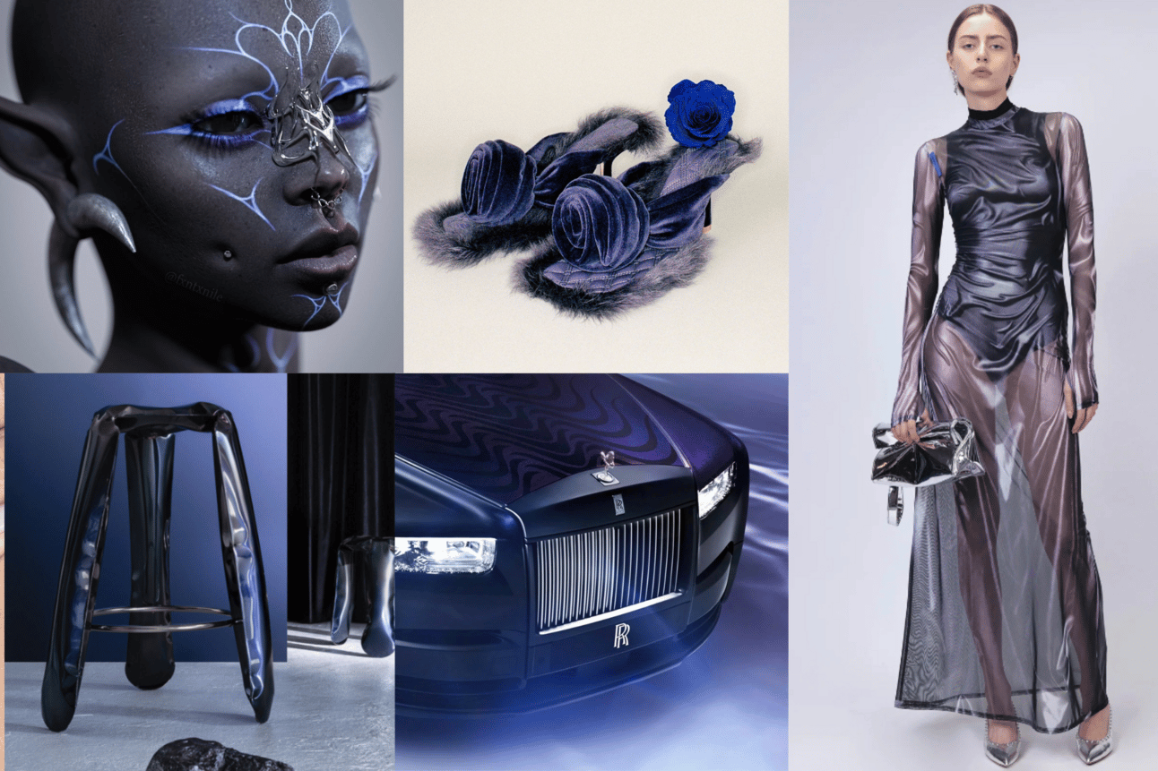 Future Dusk's surreal and otherworldly qualities align with the influence of the second space age and digital dreamery, giving it a celestial appeal. It also feeds into themes of transition – whether transition means moving from dark to light, or dusk to dawn – making it perfect for a period of immense change. It offers a fresh take on traditional dark blues, but also manages to feel simultaneously familiar and futuristic.
