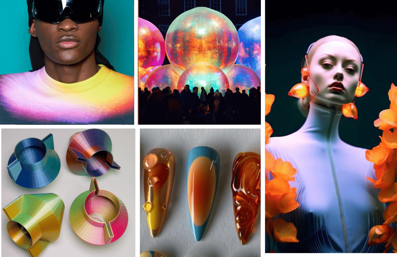 AI design inspires digital hues, otherworldly materials and immersive virtual experiences, and digital-real aesthetics inspire real-world products.