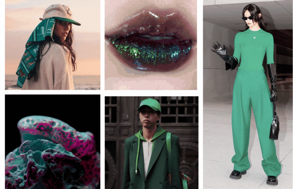 A green with shades of blue that is becoming a new and active neutral reflect the rapid rise of synthetic creativity and a growing fascination with the abnormal.