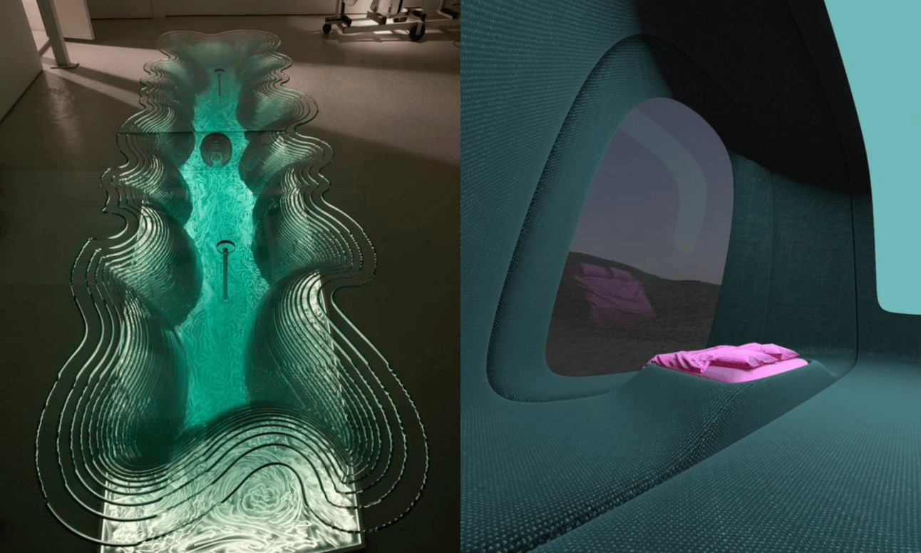 Tap into the mysterious allure of darks in shimmering finishes that emphasize the blurring of boundaries between the digital and the real realms. Explore and experiment with finishes to achieve AI-driven aesthetics. Lenticular materials, chameleon coatings and transformative iridescence as well as digital gradients bring to life an eerie shine. Explore shadow, bioluminescent pigments and ombré effects to evoke eerie auras and surface textures.