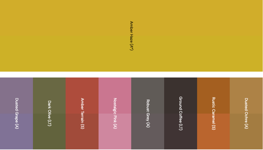 Amber Haze is a green-toned yellow that embraces with an energizing rich and radiant quality. It has an aged appeal reminiscent of stones and crystals, connecting with the search for spirituality and guidance as people look to ancient wisdom in times of uncertainty.